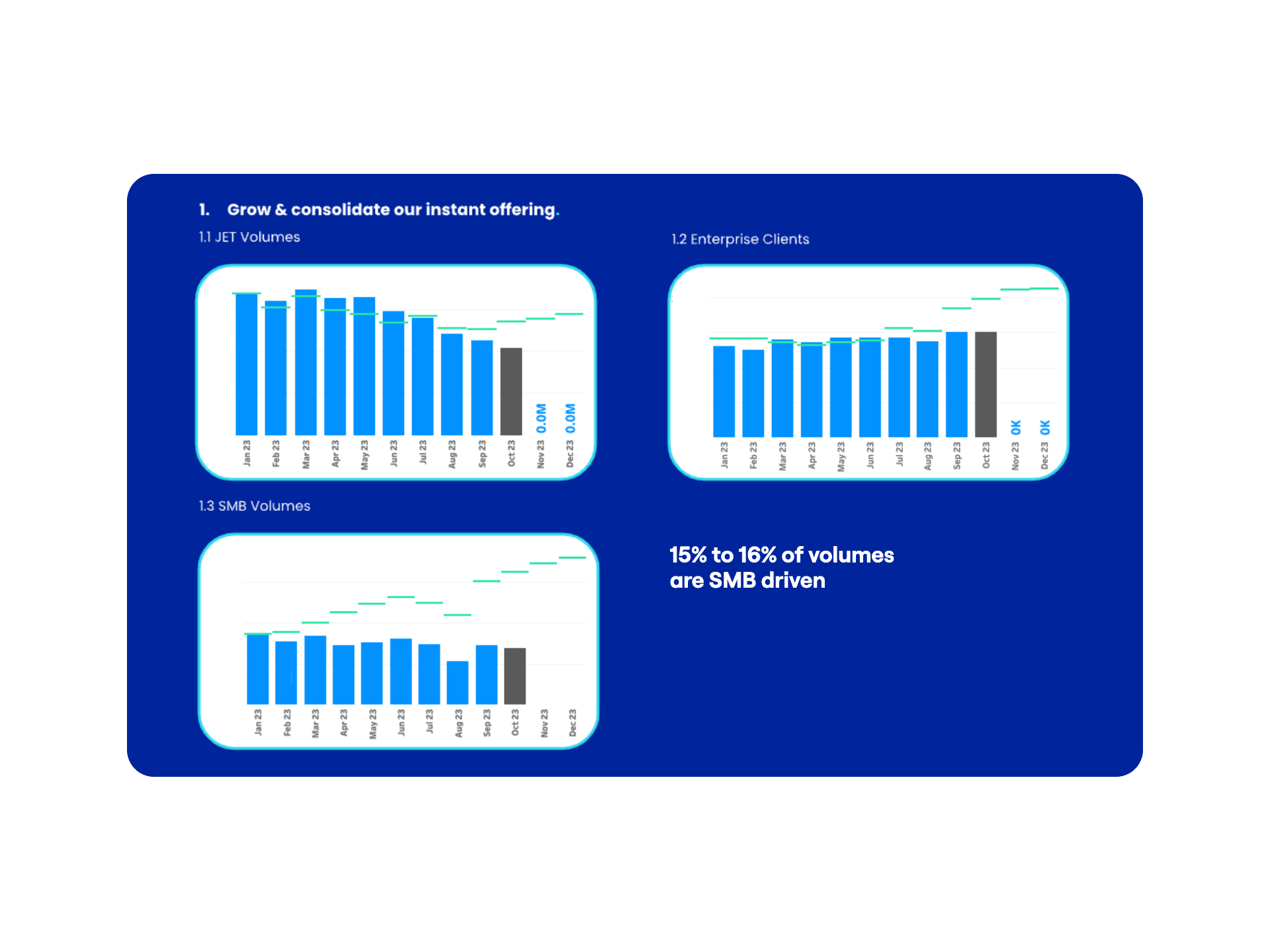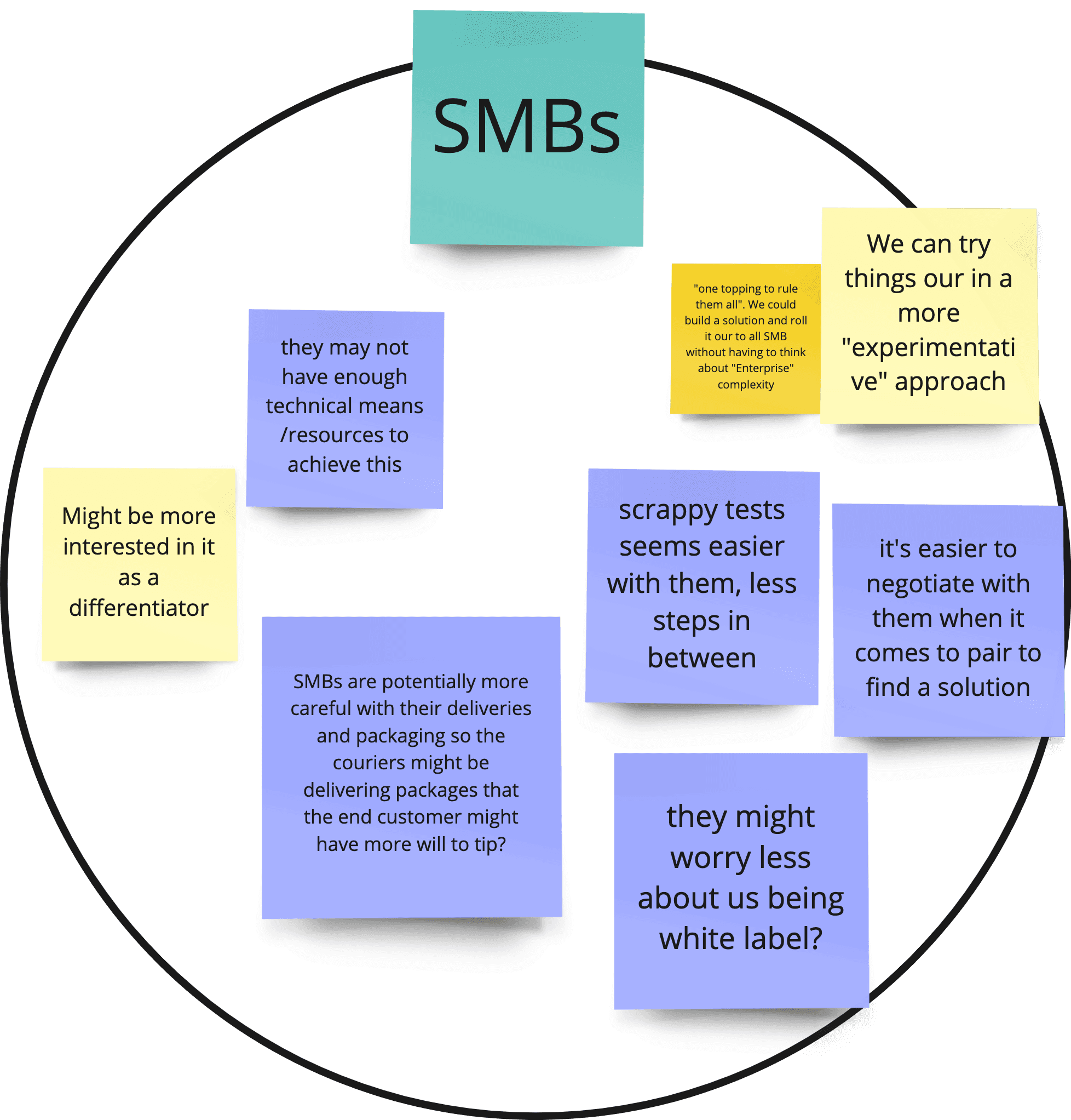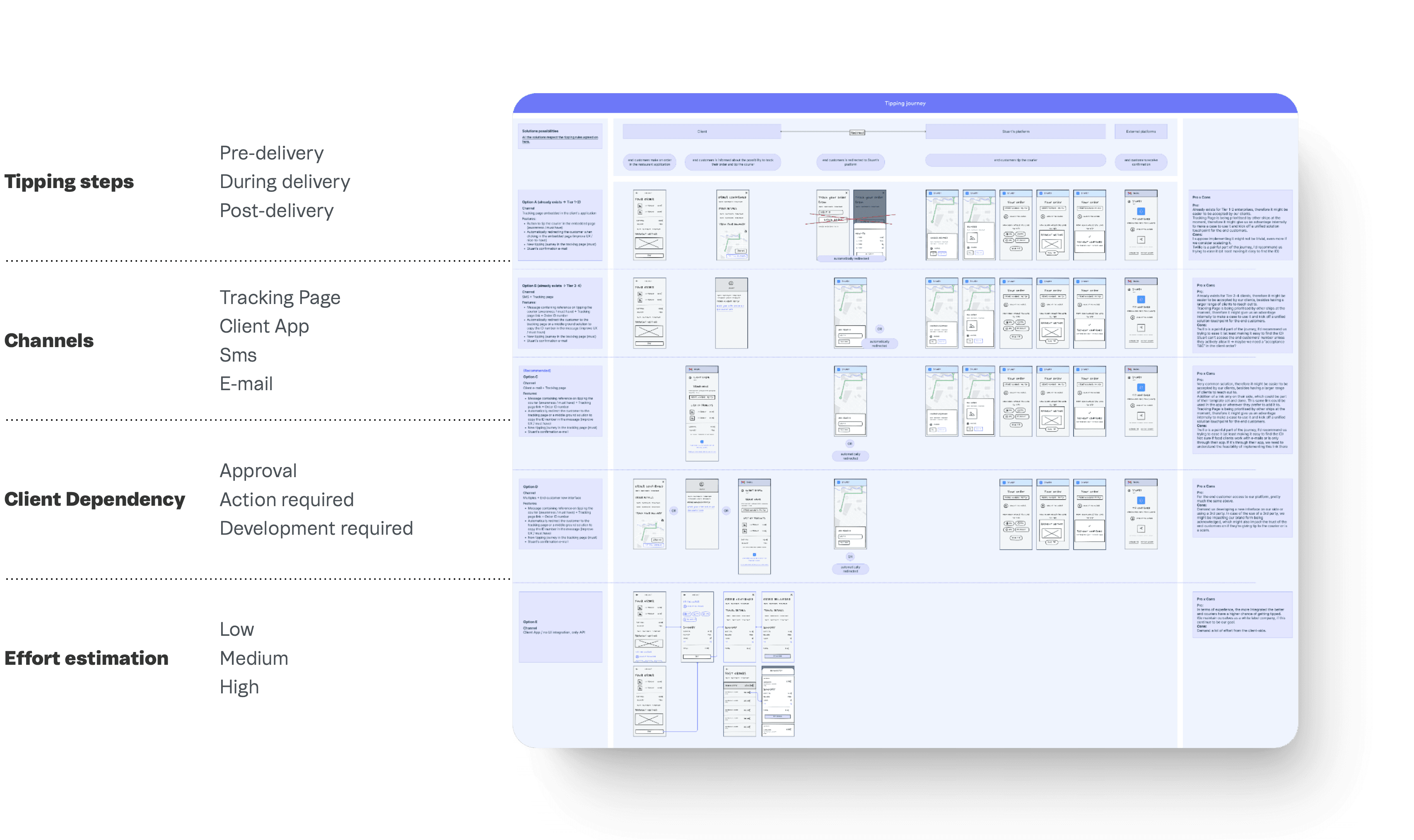 To kick off the project, I conducted a workshop with product managers and stakeholders to define our strategy. We analysed the data on client segments, delivery volumes, and key offerings we wanted to prioritise.