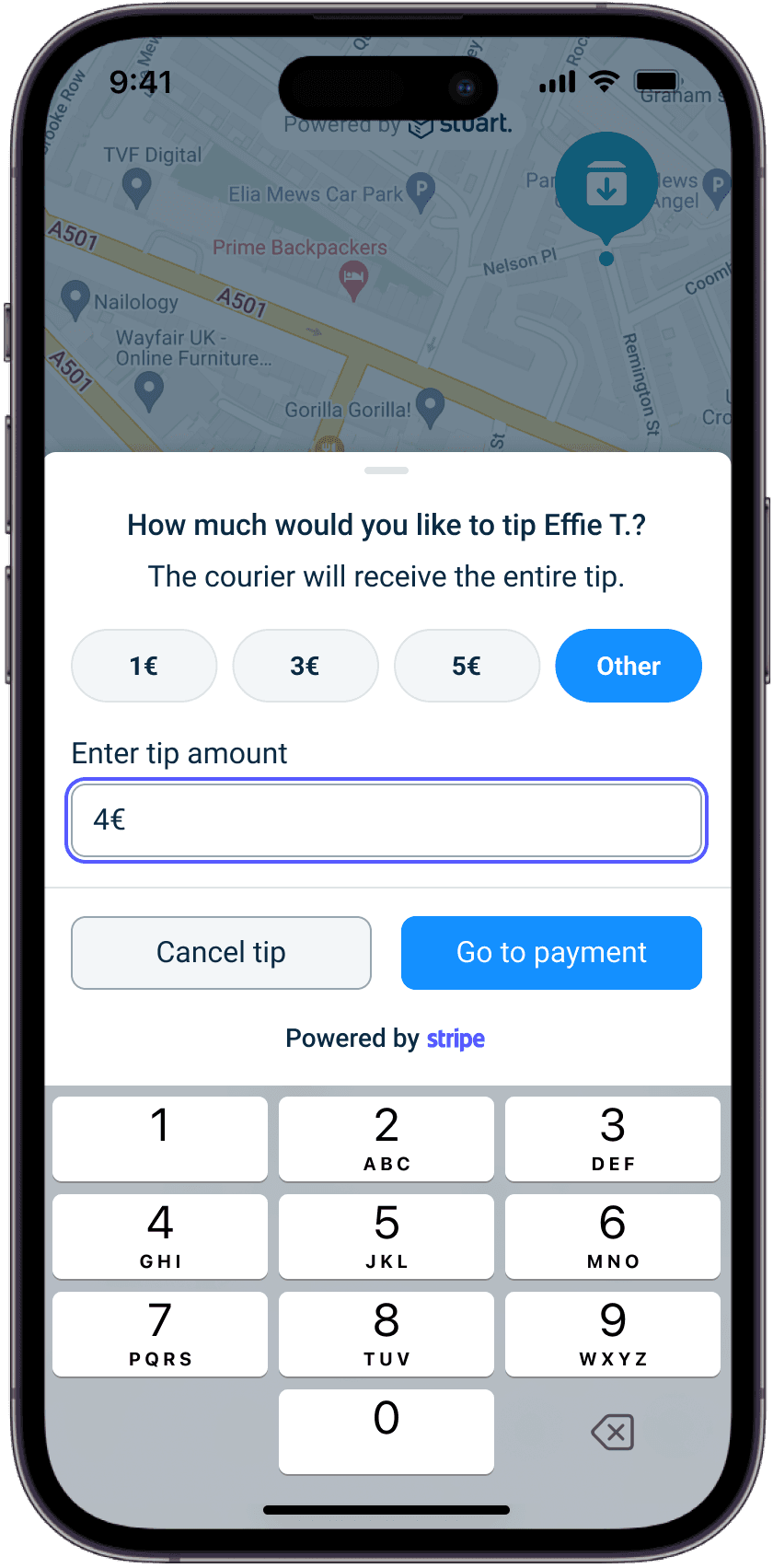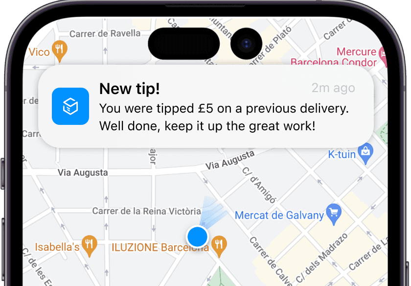 The courier receives a tipping notification in their app once the customer's withdrawal period ends, ensuring momentum is maintained and motivating them to continue delivering great service.