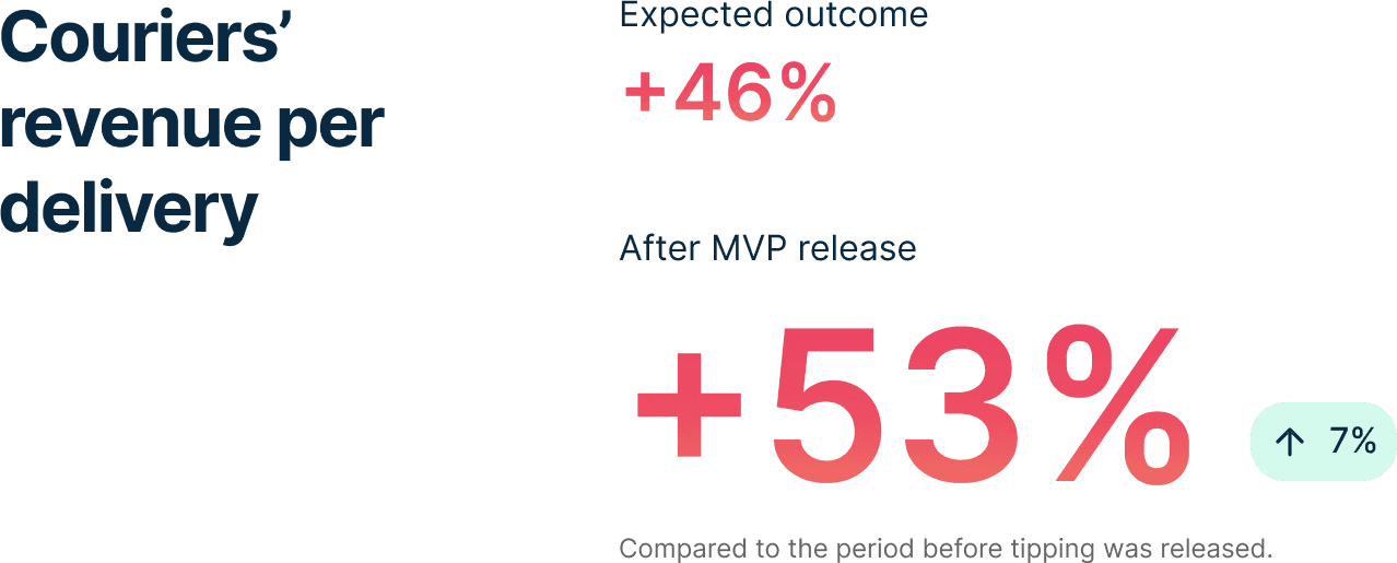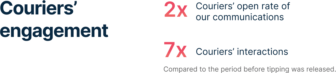 Tipping has been couriers' top request in our surveys since 2021 because it significantly increases their earnings per delivery. As competitors offer tipping, couriers are more likely to prioritise them, leading to reduced engagement with us.